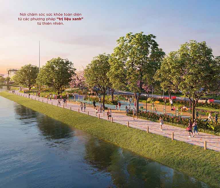 Từng vườn cây, thảm cỏ hay những lối đi tản bộ tại đây đều được các nghệ nhân cảnh quan chăm chút tỉ mỉ đến từng chi tiết nhỏ nhất. Tất cả đan cài vào nhau tạo nên một dải lụa xanh mướt bao bọc lấy không gian sống, đóng vai trò như một bộ lọc tự nhiên giúp giảm thiểu tiếng ồn, ngăn chặn bụi mịn và điều hòa nhiệt độ cho toàn đô thị. Sống giữa “kỳ quan xanh” này, mỗi bước chân của cư dân đều chạm vào cỏ cây, mỗi tầm mắt đều được xoa dịu bởi sắc xanh tươi mới, mang lại một trạng thái cân bằng hoàn hảo giữa thể chất và tâm hồn.