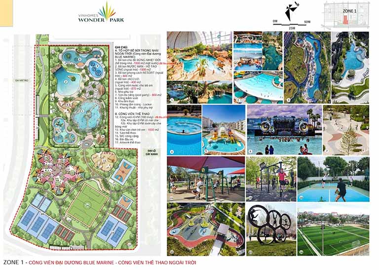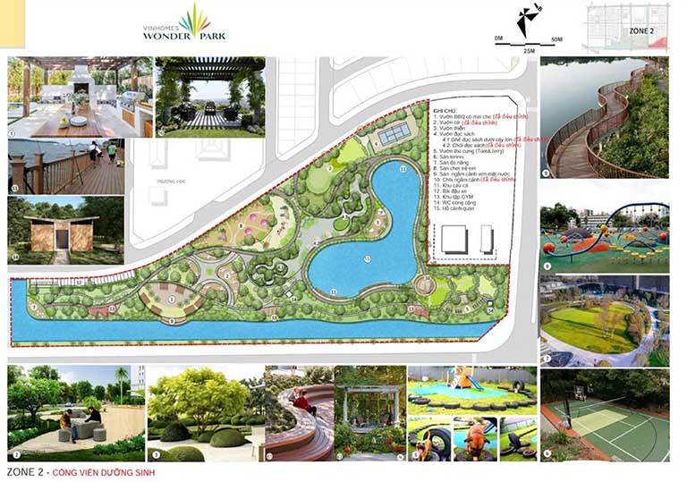 – Tổ hợp công viên đa chủ đề: Wellness Park (sức khỏe), Spring Park (mùa xuân), Adventure Park (khám phá), BBQ Park (dã ngoại) và Athletic Park (thể thao).