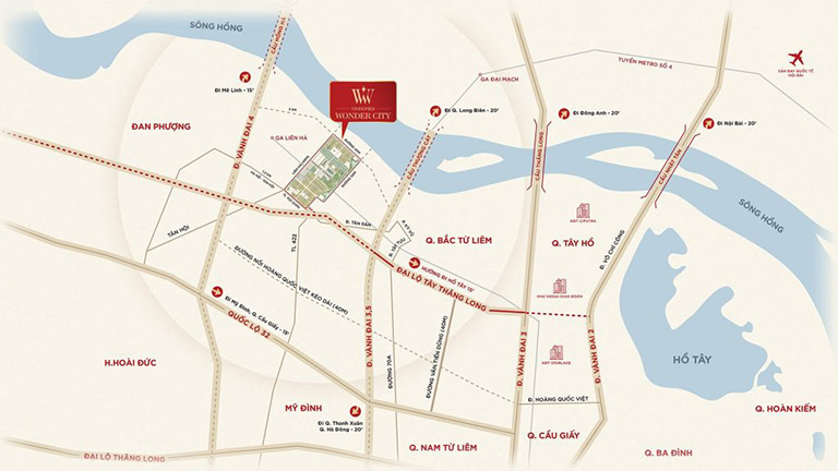 – Đại lộ Tây Thăng Long: Tuyến đường xương sống, dự kiến hoàn thành sẽ rút ngắn tối đa thời gian di chuyển, biến Hừng Đông thành khu đô thị cận trung tâm.