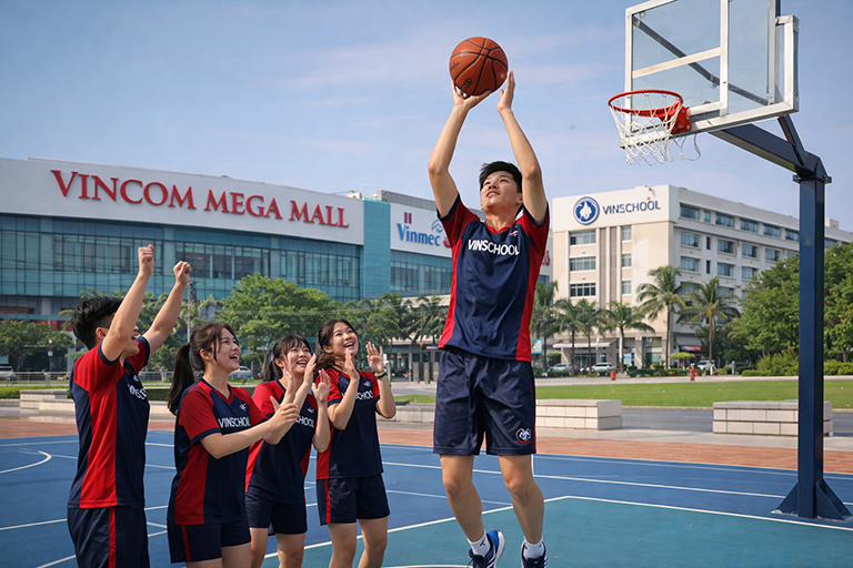 Sức khỏe thể chất luôn được ưu tiên song hành cùng trí tuệ. Trường sở hữu hệ thống sân bóng đá, bóng rổ, bể bơi bốn mùa trong nhà và khu vận động ngoài trời rộng lớn. Môi trường xanh mát của khu đô thị Vinhomes Đan Phượng cũng trở thành “lớp học không tường”, nơi các em có thể quan sát thiên nhiên và tham gia các hoạt động ngoại khóa đầy thú vị.