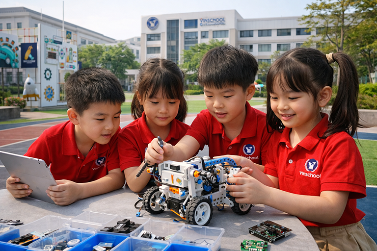 Tại Vinschool, mỗi lớp học mầm non được thiết kế như một thế giới thu nhỏ đầy màu sắc. Trẻ được học thông qua trải nghiệm thực tế, từ việc tự tay gieo hạt mầm trong vườn trường đến những giờ học hát, múa và vẽ tranh. Cách tiếp cận này giúp trẻ phát triển niềm đam mê học tập tự thân, tạo nền móng vững chắc trước khi bước vào bậc tiểu học.